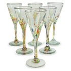 These unique fair trade champagne glasses add a festive ambiance to your celebration. The vibrant multicolored confetti design is a magical creation by Javier and Efren. Made from thick, durable hand-blown glass, these glasses are perfect for frequent use and won't tip over or break as easily as traditional stemware. Because of their hand-blown nature, each glass is unique and no two are exactly the same. Hand-crafted using 100% recycled glass, this set of 6 would make the perfect set of wedding champagne glasses for the eco-friendly bride.